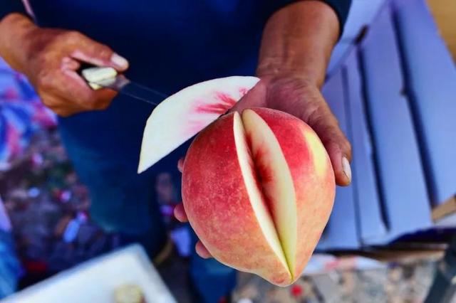 【麗江】 麗江雪桃 麗江雪桃,種植在玉龍雪山腳下拉市海畔,日復(fù)一日享受著麗江純凈高原天地萬(wàn)物的滋養(yǎng),從而使得果肉結(jié)構(gòu)緊密,果形美觀,果實(shí)碩大。麗江雪桃的成長(zhǎng)周期長(zhǎng),成熟期晚。每年2月中下旬開花,生長(zhǎng)期長(zhǎng)達(dá)200多天,于國(guó)慶前后上市。這漫長(zhǎng)的生長(zhǎng)周期和獨(dú)有的卓越品質(zhì),使得麗江雪桃品質(zhì)、口味與眾不同,一個(gè)成熟的雪桃,甜度超過(guò)冰糖,可謂桃中珍品。